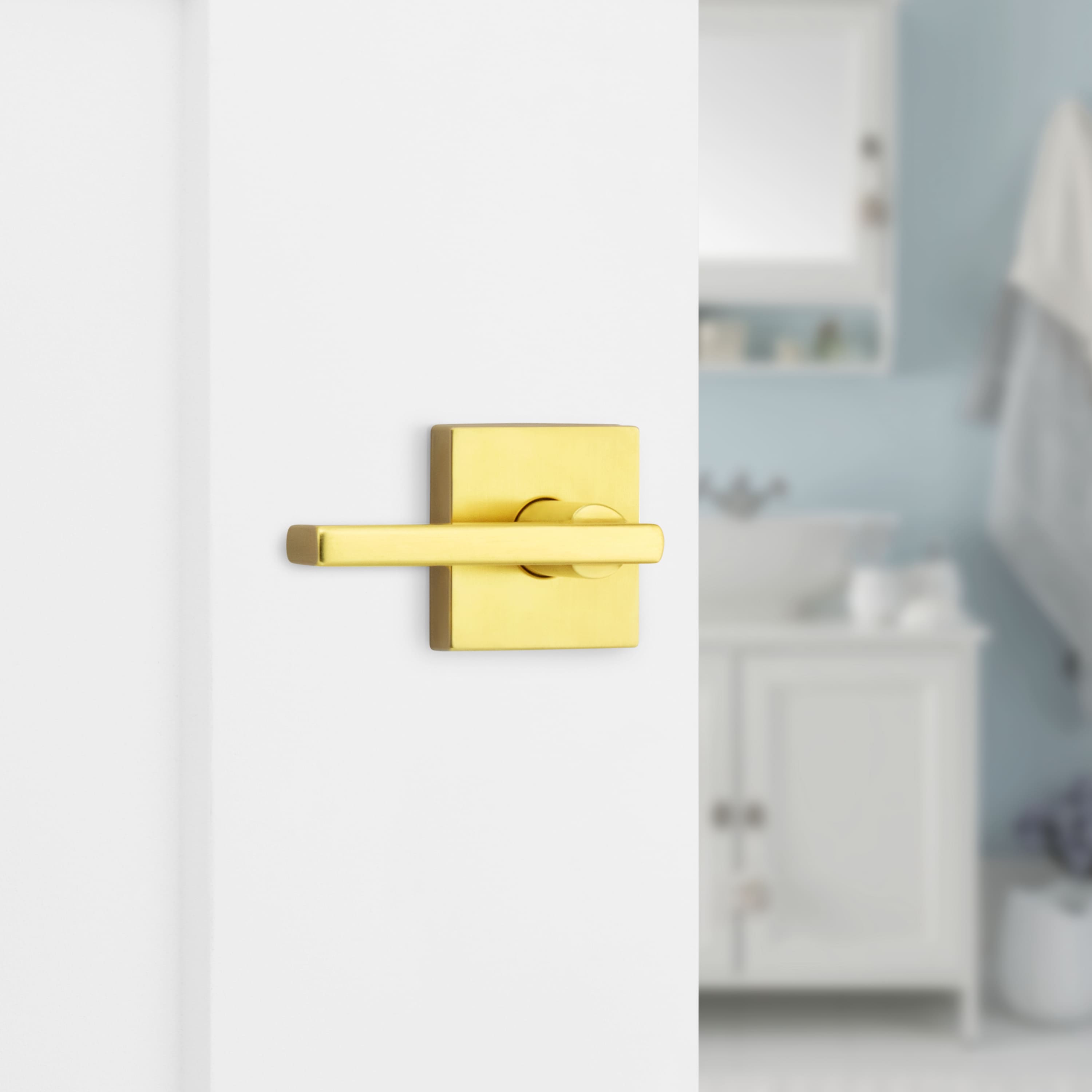 With Weiser® you can blend simplicity with elegance. Whether you're looking for traditional, transitional or contemporary style, our selection and finishes will make it easy to find the right accent for your home. This privacy knob/lever is best used in interior bed and bath applications where privacy is required. Both knobs/levers are locked or unlocked by push button inside. The outside knob/lever can be unlocked by an emergency key. The textured finish of Satin Brass provides a more elegant and luxurious look.