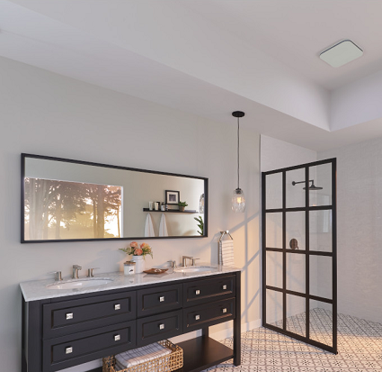 110 CFM for effective ventilation to remove moisture and reduce the risk of mold or mildew in most full baths.