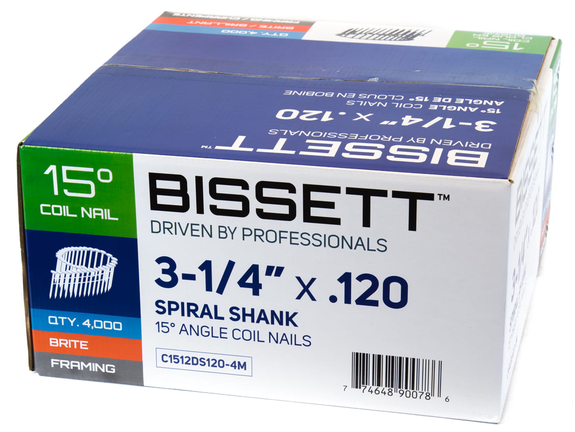 Coil Framing Nails, 2-1/2" x .099, 15-Degree, Spiral, Brite, 5000/box Product Code: C158S0995M $58.95 Each Add to Cart