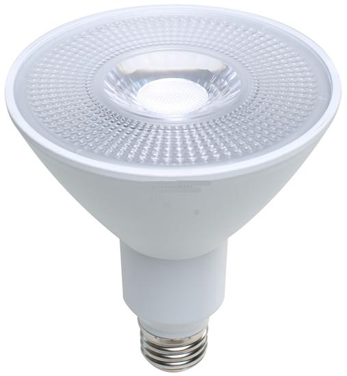 LED flood lamp suitable for use in wet locations, such as in outdoor security lighting fixtures.