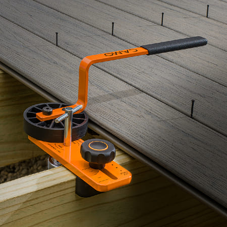 Build a better deck, by yourself, with Camo's "LEVER" tool that locks-in rows of boards and clipas well as straightening any warped boards.