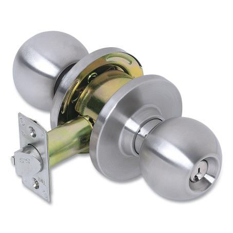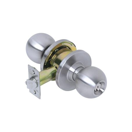 Passage Knob, KC2300 Series, SATIN CHROME, W/T-Strike (Heavy Duty, Cylindrical, Grade 2, KC2375), Tell Box Pack