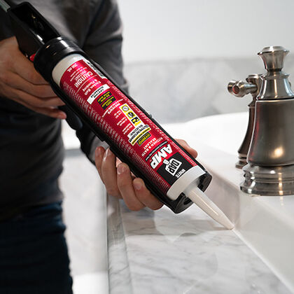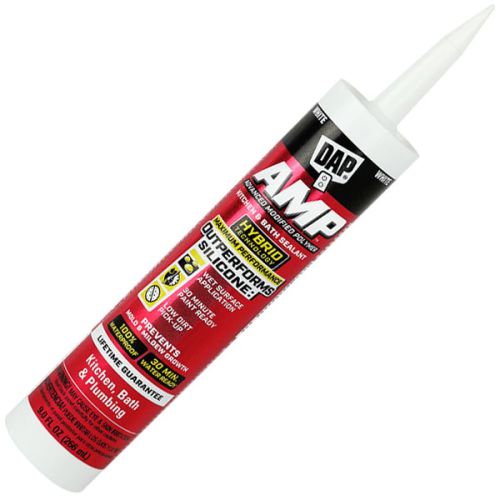 DAP AMP Advanced Modified Polymer Kitchen, Bath and Plumbing Sealant provides a 100% waterproof seal with the ability to be applied on wet and damp surfaces.
