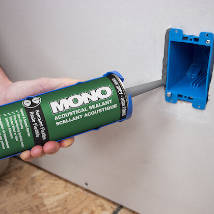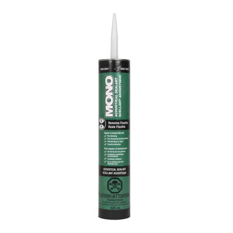 MONO® Acoustical Sealant is a single-component, non-skinning, non-hardening synthetic butyl rubber sealant for use in reducing sound transmission in drywall partitions and for sealing wall penetrations. Provides an effective adhesive seal for air and vapour barriers.