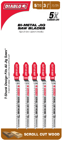 Diablo’s bi-metal teeth jig saw blades application are specifically designed for maximum durability, longer life and fast cuts in wood applications.