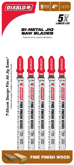 Jig Saw Blade, T-Shank, 10 TPI x 4" (fine wood cutting) 5/pkg, Diablo Bi-Metal