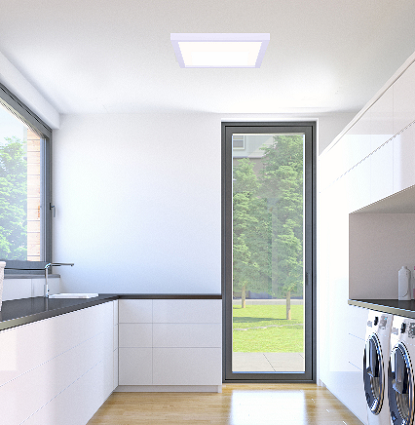 Modern, low-profile light with white finish and frosted acrylic lens, suitable for ceiling or wall mount
