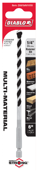 Drill Bit, Impact/Hammer, 1/4" dia, Diablo Multi-Material