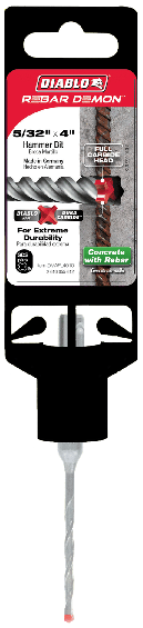 Drill Bit, Masonry, SDS Plus, Rotary/Hammer, 5/32" dia x 4" long, Diablo Rebar Demon