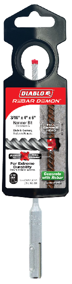 Drill Bit, Masonry, SDS Plus, Rotary/Hammer, 3/16" dia x 6" long, Diablo Rebar Demon