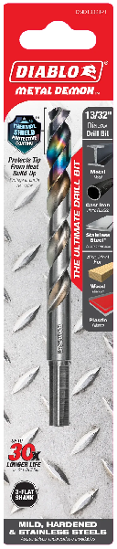 Diablo's Metal Demon™ Drill Bits redefine metal drilling with the industry’s first three-in-one bit to tackle all metals: mild, hardened, and stainless steels, as well as wood or plastic.