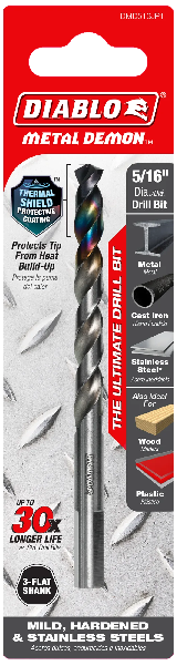 Diablo's Metal Demon™ Drill Bits redefine metal drilling with the industry’s first three-in-one bit to tackle all metals: mild, hardened, and stainless steels, as well as wood or plastic.