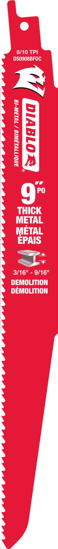 Reciprocating Saw Blade, Bi-Metal, 9"x 8/10 TPI (metal cutting to 3/16" - 9/16" thick) bulk