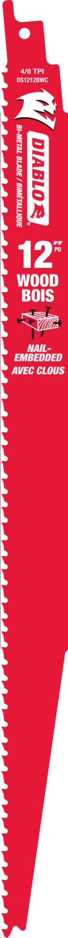Reciprocating Saw Blade, Bi-Metal, 12"x 4/6 TPI (nail-embedded wood) 5/pkg Product Code: DS1212BW5C $37.99 Each Add to Cart
