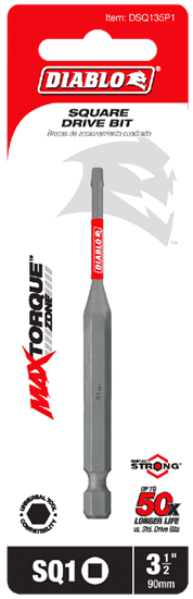 Diablo's driver bit range of Square bits delivers maximum performance, extreme durability and up to 50X longer life when installing and removing fasteners.