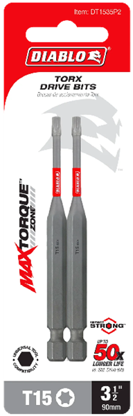 Power Bit, Torx, T-15 x 3-1/2", 2/pkg, Diablo