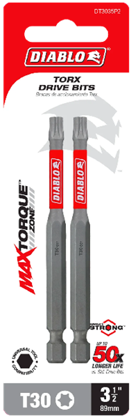 Power Bit, Torx, T-30 x 3-1/2", 2/pkg, Diablo