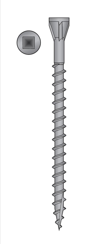 Trim head screw with coarse thread suitable for timber to timber applications such as decking.