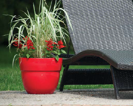 SPECIFICATIONS Use indoors or out (drill drainage holes for outdoor use) FEATURES & BENEFITS Can be used as an outdoor planter Made of high-density resin Lightweight and weather-resistant OTHER INFORMATION Smooth, glossy red finish
