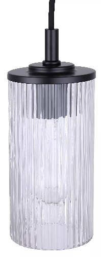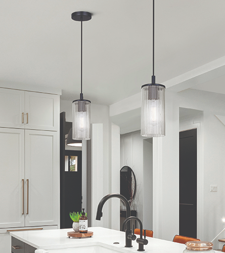 KINSLEA adorns an appealing clear ribbed glass against a beautiful matte black finish, drawing eyes to its beautifully executed details.