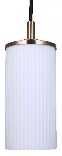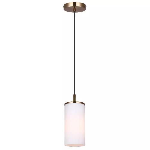 Light Fixture, Pendant, GOLD w/White, Ribbed Glass, Canarm KINSLEA