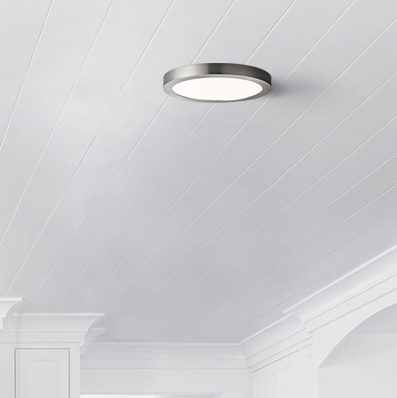 Light Fixture, Integrated LED, Flush-Mount Disc, 7" diameter, 15 Watt, 3000K, Dimmable, BRUSHED NICKEL