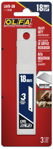 Utility Knife Blades, Olfa Serrated for Insulation, 18 mm Snap-Off, 3/pkg