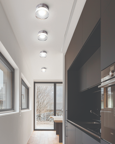 BENNI comes in three finishes of gold, brushed nickel and chrome and the choice of a textured lenses.