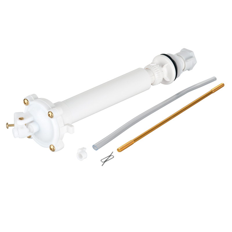 The fill valve functions by re-filling the tank after flushing and maintains the water level in the tank.