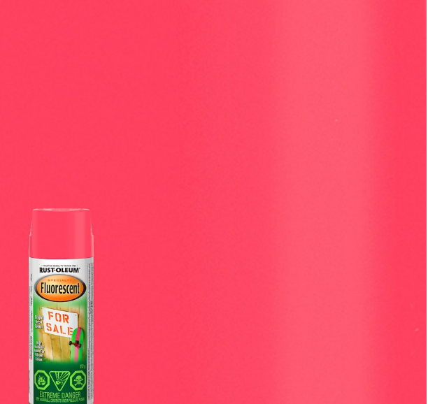 Rust-Oleum® Specialty Fluorescent Paint adds vibrant colour to crafts, toys, sporting goods and more. Apply to any surface. Creates high visibility when stenciled or sprayed directly to objects.