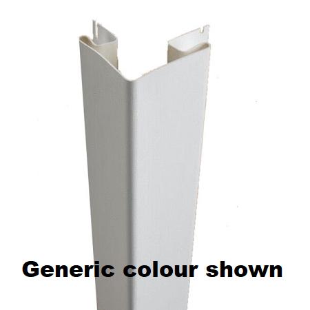 A vinyl siding trim that creates a clean finished edge where two walls meet at a 90 degree angle, forming an exterior corner. The outside corner covers the raw edges of the siding, neatly finishing off the outside edge.