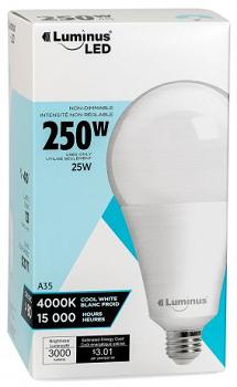 Light Bulb, LED, High-Intensity A35, 25 Watt, Cool White, Non-Dimmable, 1/pkg, Luminus