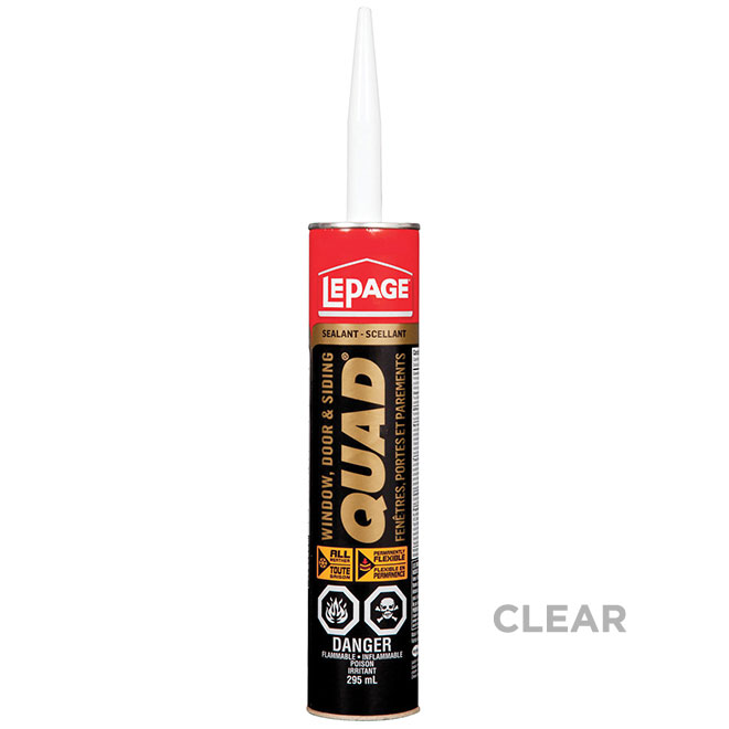 Arm yourself against the elements with LePage QUAD Window, Door & Siding Sealant. LePage QUAD Window, Door & Siding Sealant is an all-season formula designed for superior performance on exterior window, door and siding applications, fibre-cement and vinyl siding, PVC trim, and much more.