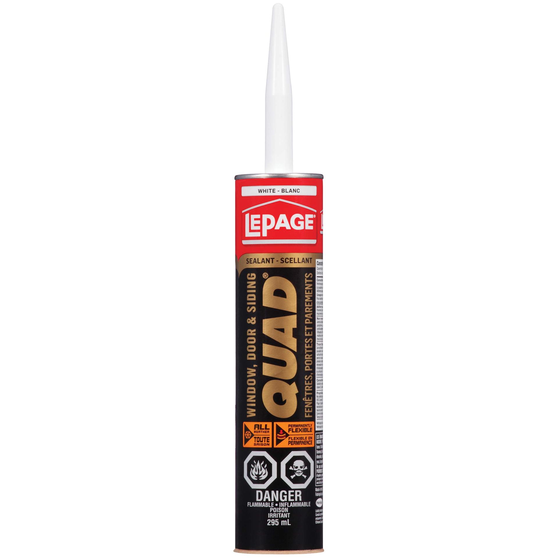 Arm yourself against the elements with LePage QUAD Window, Door & Siding Sealant. LePage QUAD Window, Door & Siding Sealant is an all-season formula designed for superior performance on exterior window, door and siding applications, fibre-cement and vinyl siding, PVC trim, and much more.