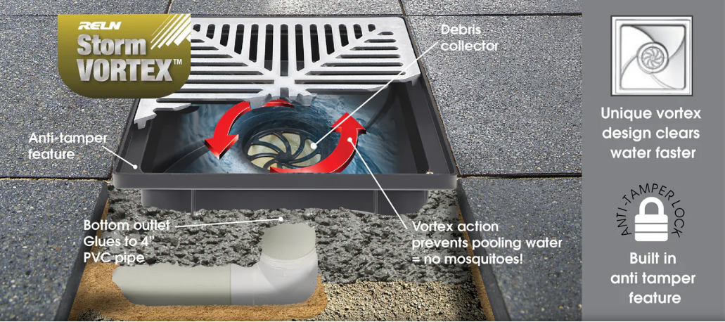 Drainage Basin, 6 in x 6 in, Stainless Steel Grate, RELN