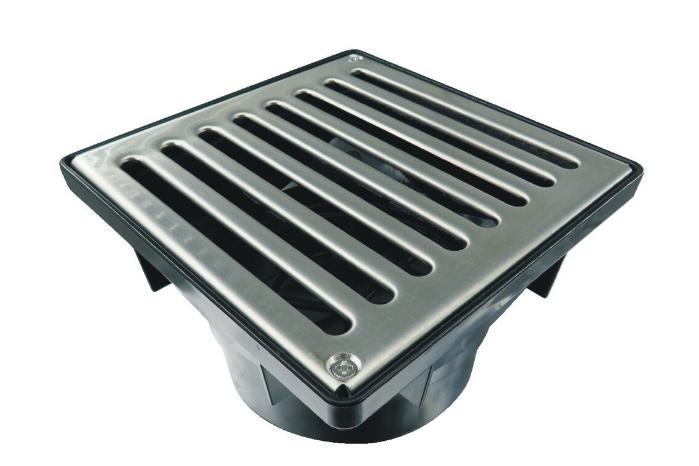 Features a 6 in stainless steel removeable grate, and a 4 in bottom outlet connection.