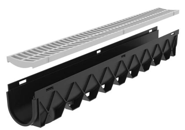 The tough durable and lightweight UV stabilised plastic channel includes Portland Grey grate to suit domestic pedestrian and vehicle traffic.