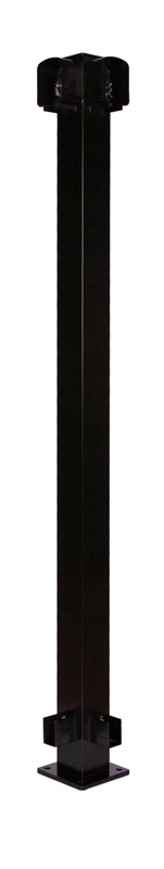 Post is 2-1/4" square and comes complete with post cap and welded brackets at 90 degrees to connect rails to post