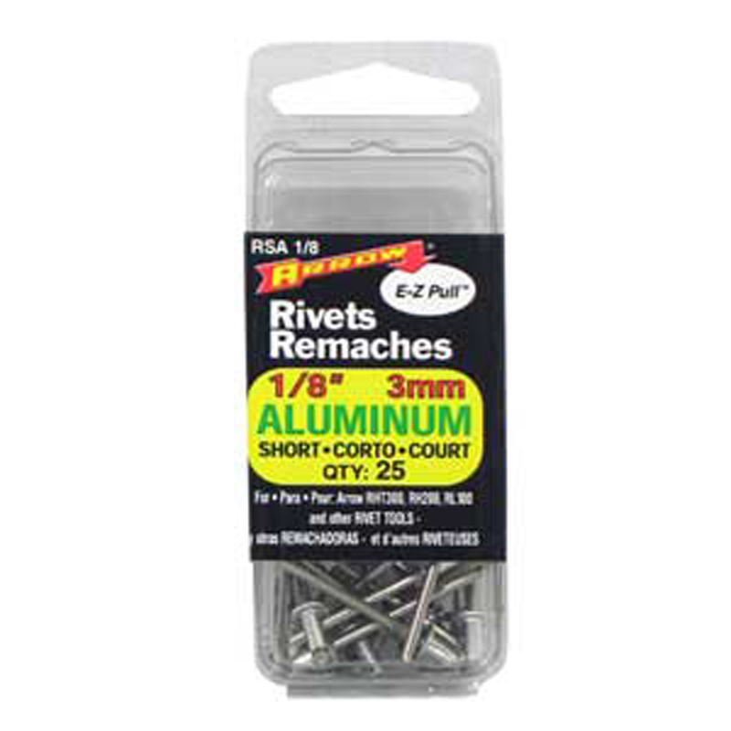Pop Rivet, Aluminum, 1/8" dia., Short, 25/pkg