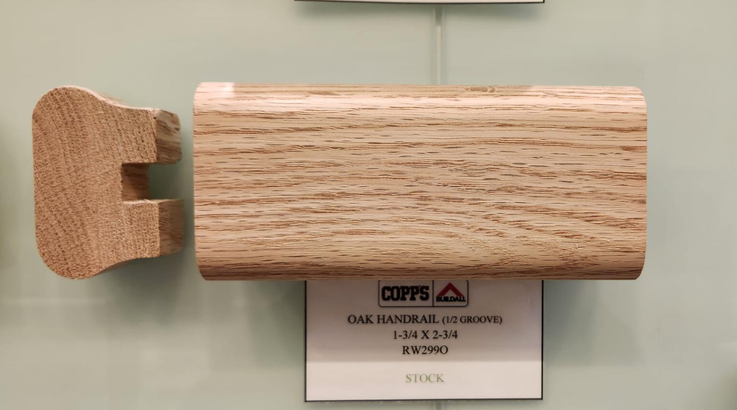 Handrail, Oak, 1-3/4" x 2-3/4", with 1/2" Groove (sold per linear foot, random lengths)
