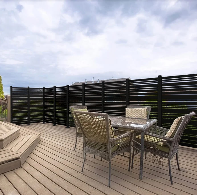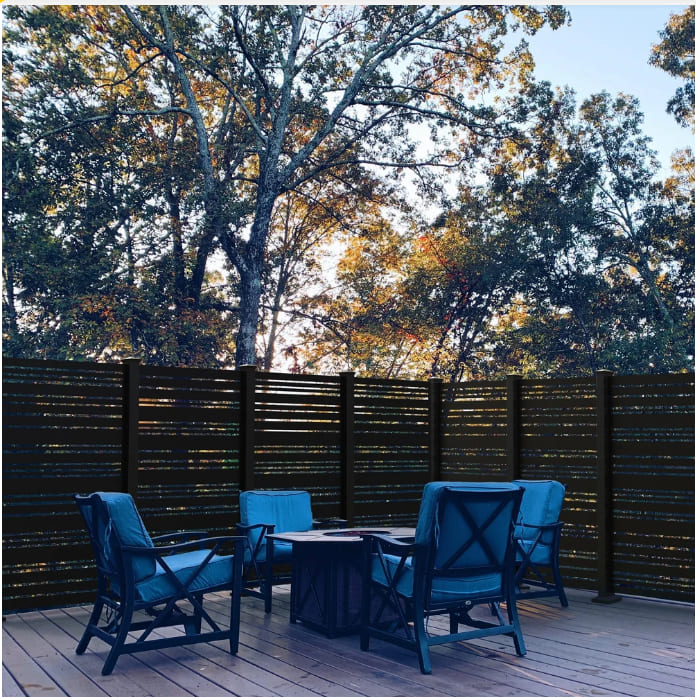 Love the look of varied board heights & continual lines? Our Next Line Privacy Screen offers just that. Long, lineal runs of horizontal openings make this privacy wall style modern & sleek.