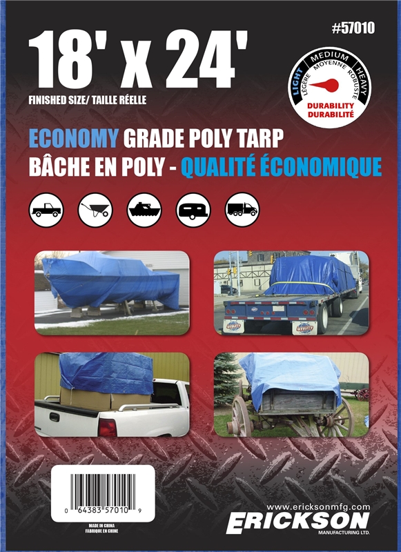 Tarpaulin, Woven Poly, 18 ft x 24 ft, BLUE