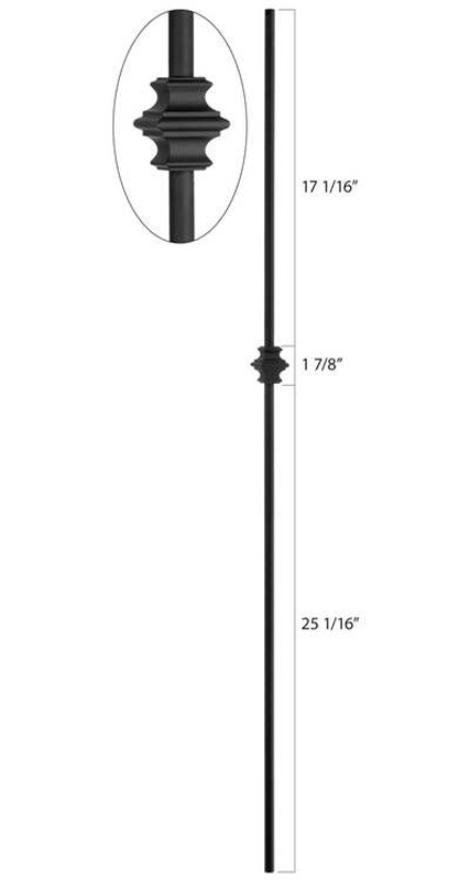 Spindle, Square with Dowel, with Single Collar, 1/2" x 40", Steel, Wrinkled BLACK, Bezdan