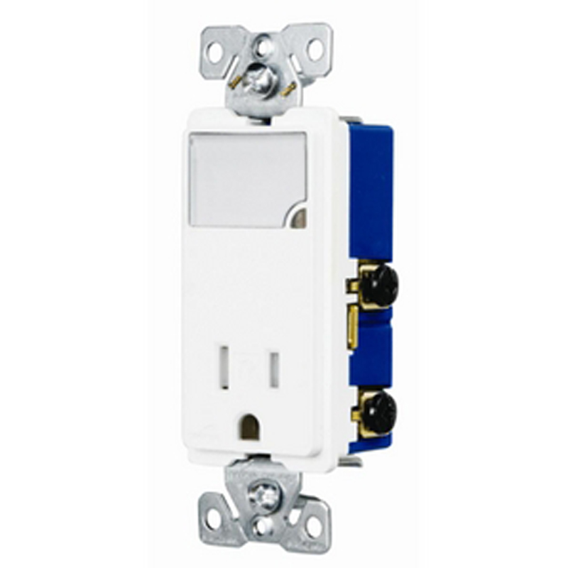 Receptacle, Single, Decora, with LED Night Light,Tamper-Resistant, WHITE, 15 amp, 125 volt