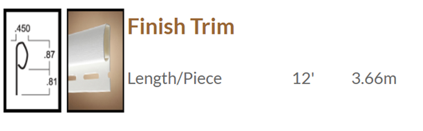 Vinyl siding finish trim, also known as under sill trim, provides a neat and finished appearance where siding runs are incomplete, such as at the top of walls or below windows and doors.