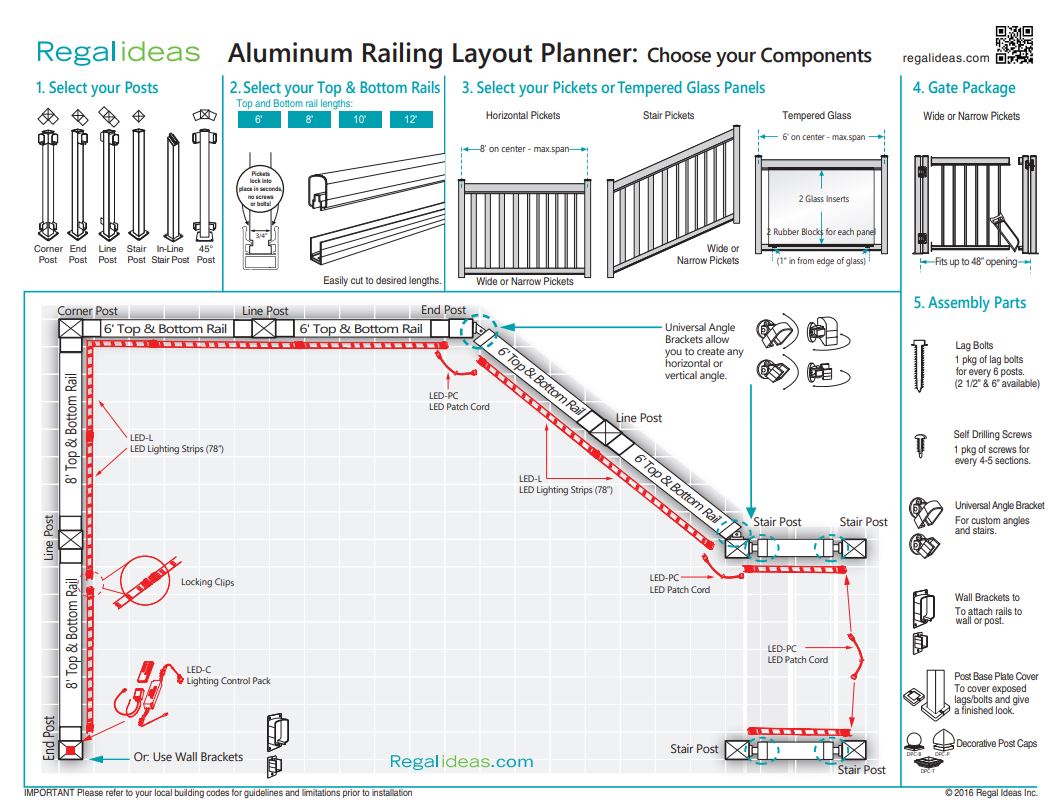 1-9/16” pickets, includes 14 aluminum 4” spacers