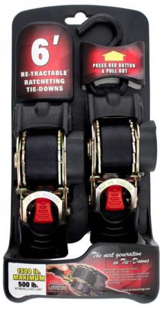 Ratchet Tie Down, "Re-Tractable", 1" X 10 foot, Rated 1200 Pounds, 2/pkg Product Code: 34415 $41.49 Each Add to Cart