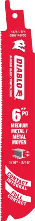 Reciprocating Saw Blade, Bi-Metal, 6"x 14/18 TPI (metal cutting to 1/16" - 5/16" thick) bulk Product Code: DS0614BFCC $5.99 Each Add to Cart