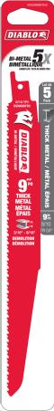Reciprocating Saw Blade, Bi-Metal, 9"x 8/10 TPI (metal cutting to 3/16" - 9/16" thick) bulk Product Code: DS0908BFDC $5.99 Each Add to Cart